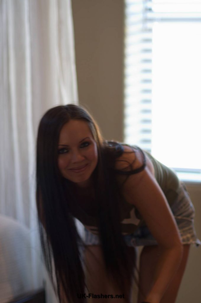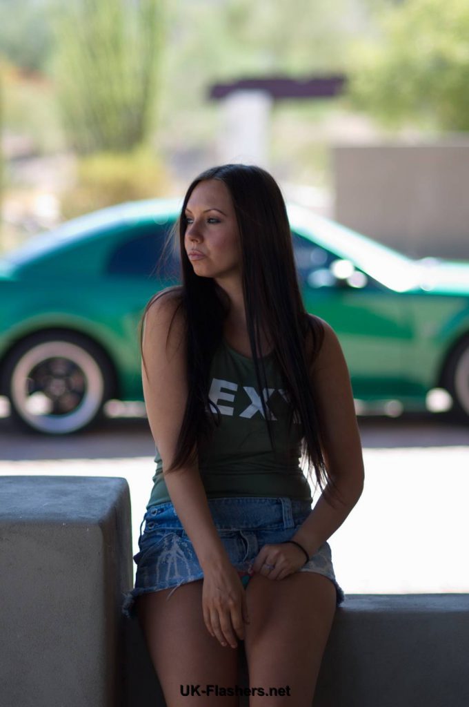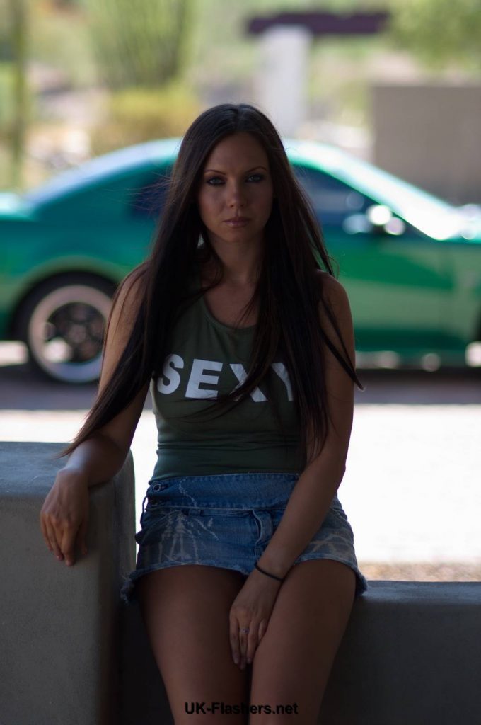 Darlas sexy amateur flashing and upskirts footage of cute brunette exposing tits and firm denim ass outdoors
