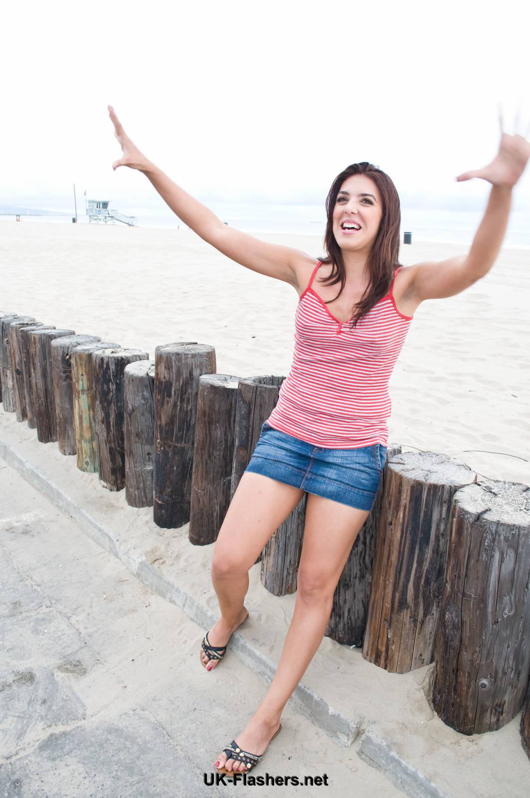 Amateur flashing and small tit exhibitionism outdoors of sexy babe Claire James in outdoor voyeur and upskirt footage